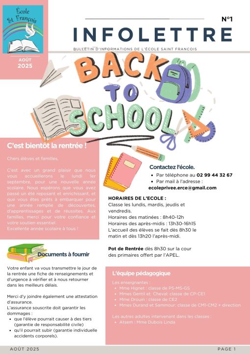 Voici les premières informations de la rentrée 2025/2026.